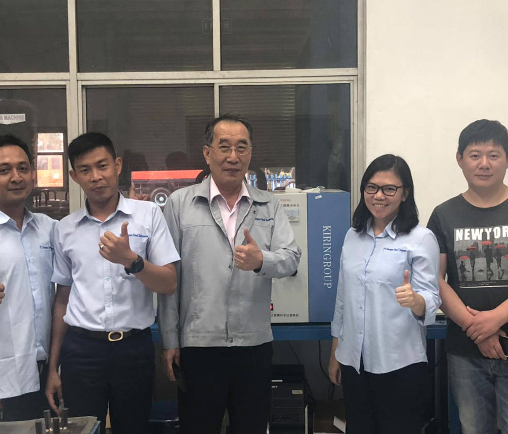 2019年元月份,印尼春寶鋼鐵公司從南京麒麟科學儀器集團引進一套QL-S3000C型多元素分析儀,檢測螺紋鋼等材質中的元素含量。多元素分析儀碳硫元素采用紅外吸收法,其他元素采用機外溶樣,光電比色法來分析。近日,南京麒麟科學儀器工程師已到印尼春寶鋼鐵公司現場安裝調試培訓完成,周工細致嚴謹的與操作員技術溝通得到客戶的贊許,愿與麒麟攜手長期合作。